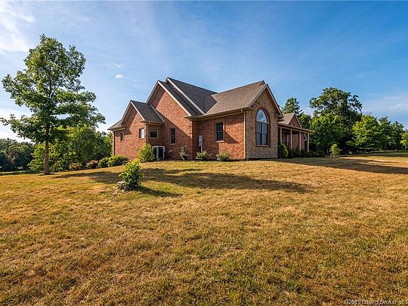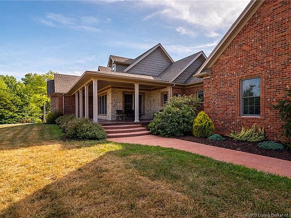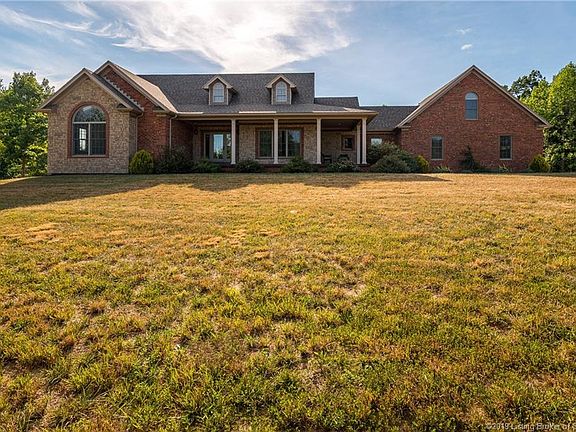 Executive home in picturesque gated community, Flat Rock Estates. Boasts beautiful craftsmanship & attention to detail, home features arched doorways upgraded trim detail & multitude doors & windows for max natural light. Builder spared no expense to accomplish beautiful aesthetic & quality. 3 acre lot & over-sized covered front porch leading into grand foyer. Entry to great-room w/stone fireplace, vaulted ceiling & triple door leading to deck area. Home flanked front & back side by 2 lakes. Chef's kit. features granite counter-tops, high-end soft close cabinets, island w/cook-top, double oven, prep sink, & full complement of steel appliances. Eat-in kit., or dining room for formal dinners. Master-bed w/panoramic lake view & door leading to balcony. Master-bath w/his/her closet w/custom systems, sep. sink & vanity areas, Jacuzzi tub, & sep. shower area. 2nd & 3rd beds on main level w/addt bath. Above 3 car garage, addt living space w/ bed & full bath. Staircase leads into finished walk-out bsmt w/addt family room, entertain area, dining, media room, kitchen/bar area, bath & safe room. Located opposite side is bed w/bath. Doors line back & lead to covered patio. Estate offers unique lifestyle. Clark Co. Forest adjacent w/24,000 acres. Ask me about utility bills! Air purifier & sound system w/property. Comm. pavilion for resident use, boat dock, & potential boarding in stable in comm. w/boarding fee. Call to see this home at Southern Indiana's best kept secret today!