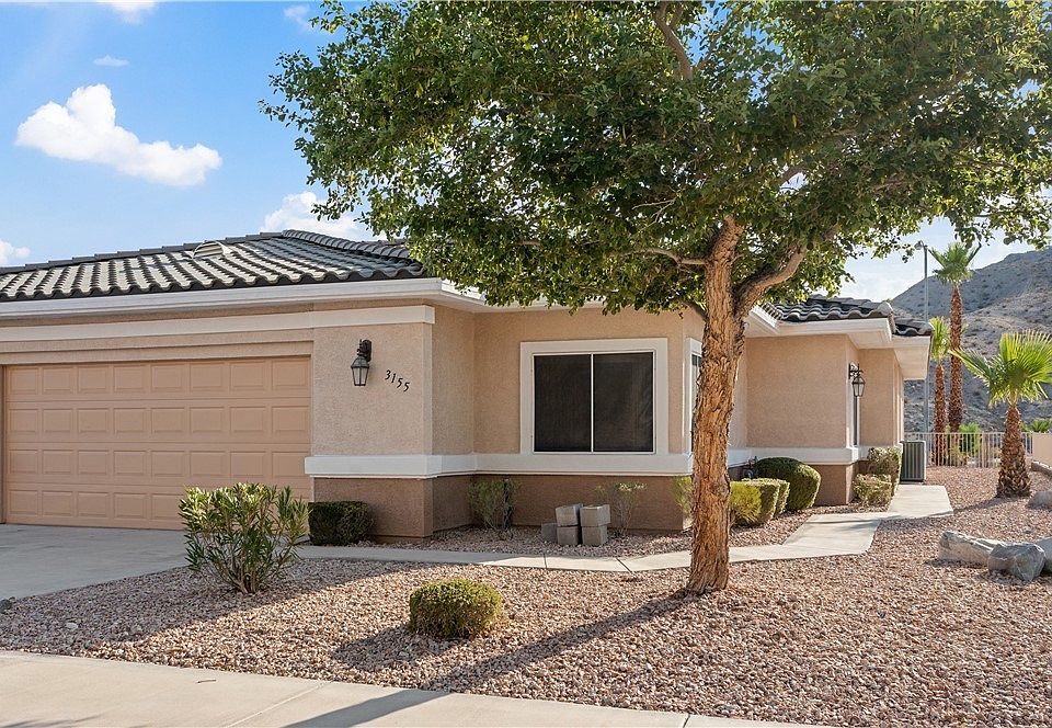 SPECTACULAR CORNER LOCATION IN GATED QUAIL RIDGE! This stunning 3-bedroom, 2-bath patio home is perfectly positioned to showcase breathtaking mountain and city views from your private covered patio. Over 1,850 square feet of well-designed living space featuring tiled floors, a massive great room and fireplace. The bright, inviting kitchen has new cabinetry and a quaint breakfast nook. The primary suite offers plenty of space and luxury. Attached 2-car garage adds convenience and secure parking. Quail Ridge residents enjoy access to a sparkling heated pool and spa, clubhouse, putting green, and horseshoe court for laid-back outdoor fun. Located just minutes from the Laughlin Strip, Colorado River, shopping, and dining, this property offers the best of desert living in a secure and welcoming setting. Enjoy the perks of resort-style amenities along with the financial advantage of NEVADA’S NO STATE INCOME TAX. Don’t miss your chance to own this corner lot gem, schedule your tour today!