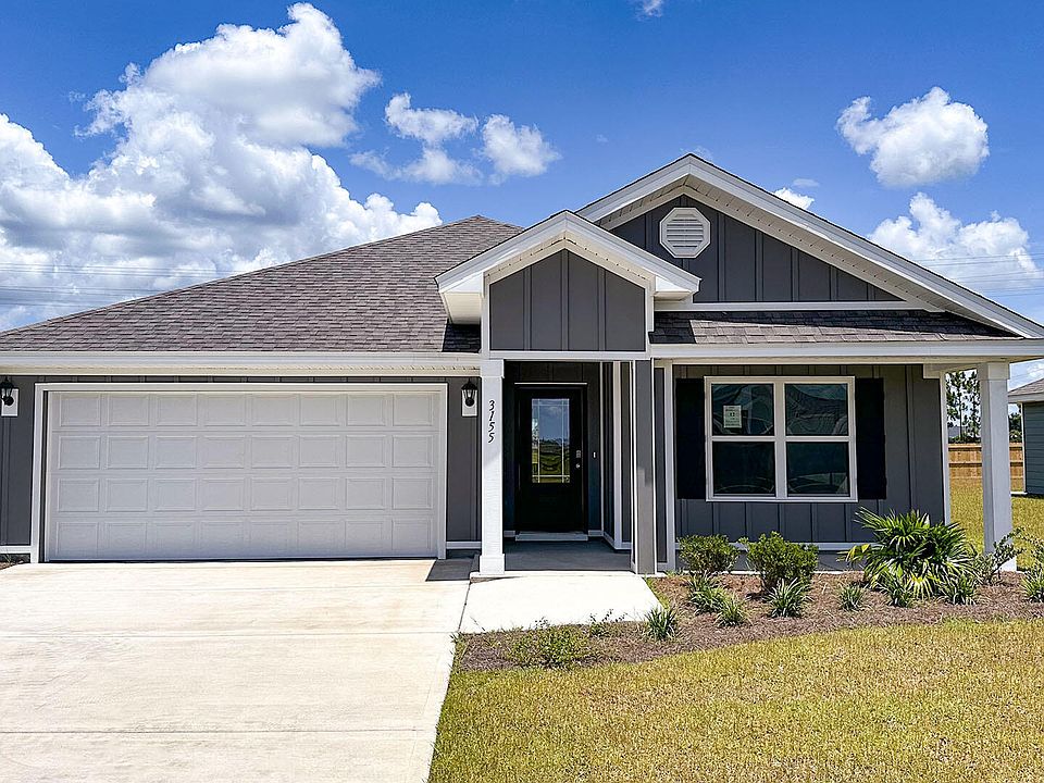 New construction in Hodges Bayou located on a deep lot. As you enter this Cali floorplan you will find traditional 8' ceilings. Engineered Vinyl Plank flooring in all common areas of the home and carpet in bedrooms. Open concept floor plan for entertaining. The kitchen has a center island, a large pantry, white cabinetry with elegant quartz countertops. The kitchen is equipped with Whirlpool appliances including stainless steel smooth top stove, microwave and dishwasher. A standard Smart Home package includes a KwikSet keyless entry, Skybell doorbell, automated front porch lighting, an Echo Dot device, and Qolsys touch panel which can be integrated to control your lighting, thermostat, front door and so much more. A builder 10-year structural warranty is also included. Hodges Bayou is just a short drive to schools, restaurants, beaches, and all that Bay County has to offer. Public boat launch access at Ira Hutchinson Park is just 1.5 miles away. This landing allows for direct access to the North Bay waterway and outward to the Gulf of Mexico. You will also find Lynn Haven Bayou Park just minutes away, with a serene nature board walk, as well launch area for kayaks. Home and community information, association fees (if any), included features, terms, availability and amenities, are subject to change at any time without notice or obligation. Drawings, pictures, photographs, videos, square footages, floor plans, elevations, features, colors and sizes are for illustration purposes only and will vary from the homes as built. Landscaping and furnishings may be decorator items not included in the purchase price and may not be available.