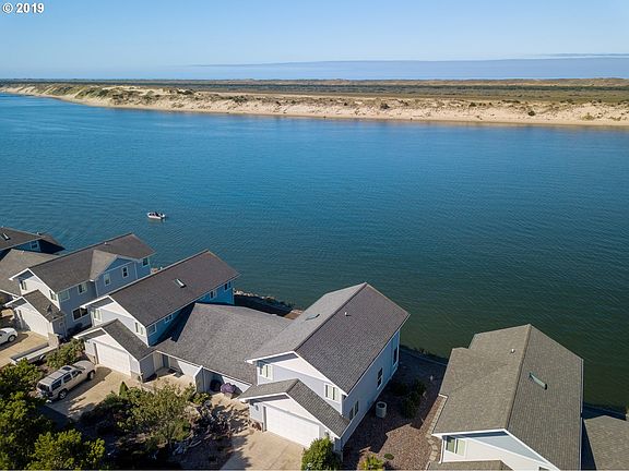 Riverfront townhome with breathtaking panoramic views of the river, dunes & sunsets. Tile entry, new wood flooring; upgraded kitchen with 5 burner gas stove & Corian counters; large laundry room/pantry/storage. New heat pump, Hardiplank siding on North & West side of home. Master suite with sitting area. Oversized, finished double garage. Concrete patio. Private fishing & crabbing at boat launch, ramp & dock. New roof Oct 2019