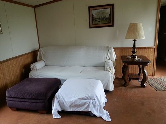 Partially remodeled mobile with new Electric and Gas meters on 5.58 perimeter-fenced acres. Insulated 12x18 pole barn with concrete floor and 2 run-in sheds, 2 wells and new water pump for horses &/or hunting camp.