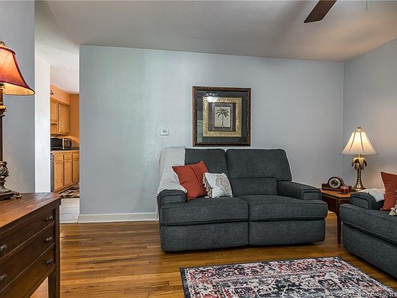 Living is easy in this immaculately maintained home. Beautifully remodeled, this home sits on a quiet street just blocks from everything you need in Clarksville & New Albany. A 3-season porch welcomes you into a formal living room with original hardwood floors throughout. Kitchen is complete with a matching Whirlpool fingerprint-resistant appliance suite, Wi-Fi-enabled undercabinet lighting, and a side wall breakfast bar with gorgeous views of the lusciously landscaped backyard. Beyond the grass: a garden of Eden, completely fenced, lush lawn, low maintenance perennials, fire pit, & mature trees are yours to enjoy! Reenter and walk down to the fully finished basement complete with a renovated & modern full bath. Enjoy movies, do laundry, or work on your computer with all the space. The basement also includes a nonconforming bedroom, if you need a 4th! Updates: a newer roof, water heater, furnace, & exterior doors. Off-street parking for up to five cars & 1-year home warranty included! Call/text today to schedule your appontment.