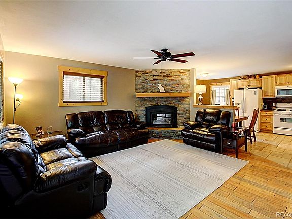 Welcome to your mountain home! Gorgeous single-family ranch-style I'm cozy 1.28 acres of beautiful, private forest land! Home offers 2 Bedrooms and 1 Full Bathroom, hardwood floors. Living Room features a fireplace with stacked surround. Eat-in Kitchen features beautiful hickory cabinetry with tile floors and gas range. The large deck is perfect for patio furniture and grill. Relax while kids and pets run and play outside! Detached garage and storage shed, plow included for winter, and chipped wood included for your fire pit! Kids will love the real treehouse! Minutes to both downtown Evergreen and Conifer!