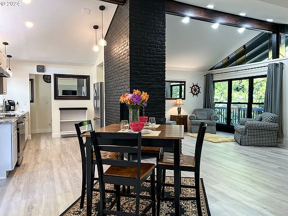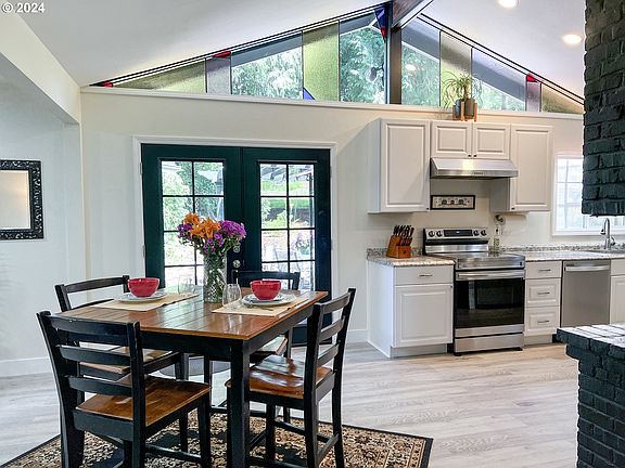 This freshly remodeled 4BR/2.5BA Mid Century modern home nestled along Scappoose Creek has so many options! A gardener's delight with green house, lush landscaping, a "she shed", tool shed, chicken coop and play fort to create whimsy throughout. The open concept floor plan of the interior will make entertaining a breeze, easy access to outdoor patio for BBQ's and a cozy fire pit to enjoy the outdoor setting. Three bedrooms on one side of the home and a large primary suite offers privacy for all family members. The spacious primary suite has a large walk in closet & outside entry to easily enjoy the back yard setting. New flooring, carpet & paint, so many updates! Property is backed by the Crown Zellerbach trail where miles of adventures abound all the way to Banks, or a stroll into town. Seller is offering a one year Fidelity Home Warranty!