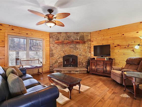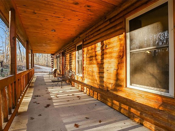 Cozy log cabin in Festus, MO! Very private 11+ acre lot with walking/ATV trails a mile long! This 3 bed and 3 full bath home features woodburning fireplace with hand-carved mantle in the living room, master suite w/ walk-in closet, main floor laundry, and kitchen with silestone counters and plenty of cabinets w/ roll out shelving. Lower level has full bath and large rec room/family room with wet bar and is perfect for entertaining or even for mother-in-law suite. Lots of storage in utility room in LL. Save tons of $$$$ with geothermal heating & cooling!! Large deck spans the length of the house and is partially covered. Hot Tub included with home. Spacious yard features gardens and fire pit. This home was built with love and even the interior walls are insulated. Garage is oversized with workbench. Highly rated Ste Genevieve School District! Home warranty provided by sellers!