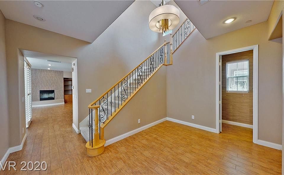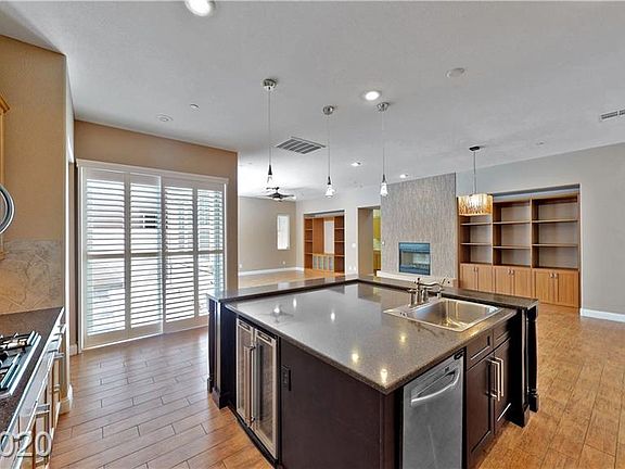 Highly sought after INSPIRADA Community, this beautiful 5/5.5 home is a MUST SEE! Walk into a grand entrance with a spiral stairs leading up to the 3 spacious bedrooms all with their own en suite bathrooms. The front bedroom leads out to a balcony where you can sit and enjoy the sunrise over the nearby mountains. Downstairs enjoy two additional bedrooms and with a recently updated amazing step in shower. The open indoor and outdoor living is perfect for entertaining. The kitchen is equipped with a wine refrigerator, stainless appliances including a double oven, and a huge pantry while the built in outdoor kitchen includes plenty of counter space and a gas grill. The sizable living room and dining area include built in shelves which provides room for all your storage needs. Inspirada Community is a walkable community designed around five amazing parks connected by trails and walkways perfect for outdoor activities, recreational sports, or meeting neighbors.