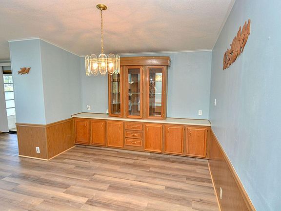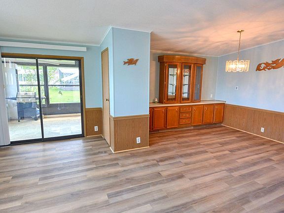 LAND OWNED! Don't miss out on this partially furnished 2/2 on a lake with NEW roof 2022 and newly installed laminate flooring in the living room, dinning room and bedrooms. Large Living room with a built in buffet in the dinning room, open kitchen with an island, bar and breakfast nook. Inside laundry room with a screened in porch overlooking the lake with built in storage and an outside utility shed.