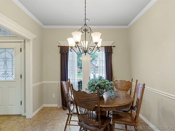 Well cared for one owner home, located in highly desired neighborhood. Highly desirable split floor plan has 3 beds down, 2 1/2 baths down, formal dining or office, 1 bedroom or game room up w/ full bath. Unfinished bedroom upstairs, has electric and framed in, just needs sheet rock. Large storage space under the stairs! Fantastic upgrades include, crown molding, newer roof, new fence in Oct, new paint outside in Oct, and french drains on both sides of the house. Spacious living room open to granite kitchen with plenty of counter space, wonderful pantry and large breakfast nook. Great covered patio perfect for entertaining opens to the fully fenced yard. Sprinkler system. Neighborhood pool, park, and trails. Bixby West school district!