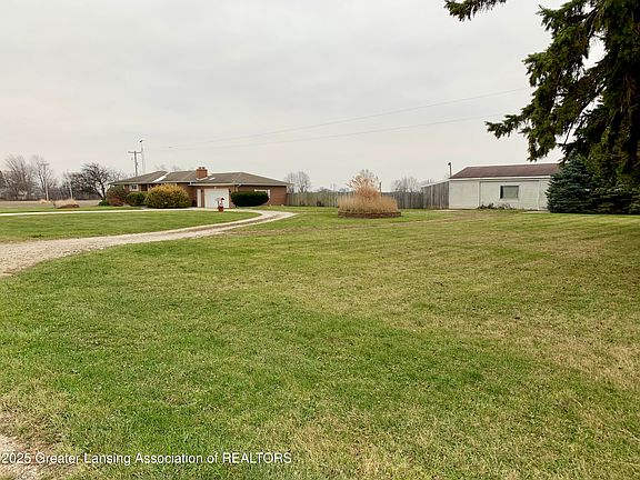 Beautiful brick home with the ''WOW'' factor. Beautiful wood floors throughout the home. Bedrooms do have carpeting. Large bedrooms with plenty of closet space .Extra storage as well. Big and beautiful living room with large front window to look out into farm fields and nature. Big fenced in yard with Generac generator and huge pole barn. This is nice! Deck off the back for relaxing with the door right off the very nice kitchen. This is a great brick home on 1.48 acres. Only 1 mile to 127 and a couple miles to St. Johns. Convenient country living. Easy to show. This is one you will want to see
