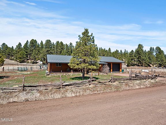 Here is your PERFECT OPPORTUNITY to Own a Single-Level Cabin on 2.14 Acres of Horse Property Bordering National Forest Service!! This is a Nice Home on Gorgeous Acreage just a Short Drive to Flagstaff on County Maintained Roads! This Home Incudes Two Parcels of Land APN 114-05-005A and B.This Single Level Home has 3 Nicely Sized Bedrooms with 2 Bathrooms. The Kitchen Opens Up to the Great Room with a Wooding Burning Stove Perfect for those Cooler Evenings. The Garage is HUGE at 816 S.F. and is the Perfect Place For Parking Those Fun Toys Like ATV's, Boats, Etc...The Siding and Roof is made of Metal for Longevity. The Home is on a Well and Besides the Wood Burning Fireplace it has Forced Air Propane for Heat.