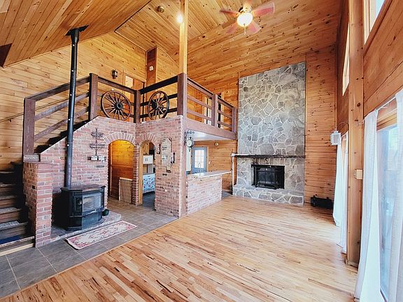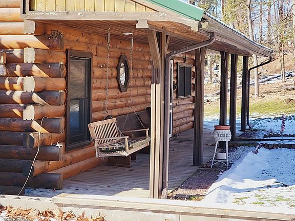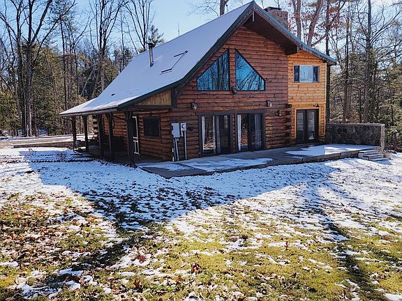 Looking for the perfect weekend getaway? This rustic log cabin is nestled on 7 plus mostly wooded acres. The home offers 3 bedrooms and 2 baths, including a master en-suite on 2nd floor with balcony and possible addition. The main level showcases a beautiful stone fireplace in the homes main living area. Outside grounds consists of stacked stone walls, small pond and garden area. Come make this place your own.