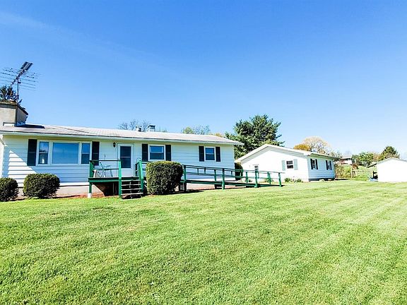 First time on the market. This sweet ranch home has a fabulous location. Just minutes from the hospital and Ithaca. Spacious living room with Llenroc fireplace, open to dining area-large windows overlook the beautiful 4.6 acres with mature trees and perennial plantings. Hardwood floors. Bright & cozy kitchen is efficient in function with a beautiful vista. 3 bedrooms and one tiled bath provide single level living. Full size basement with laundry area and mechanicals. Garden area is ready to plant. Two car garage with a new over sized 18' door. Central Air & smart thermostat. Ramp to rear entrance.