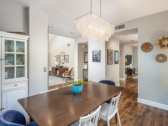 Welcome to the enclave of La Costa, where this beautiful 3 bedroom + office, 2.5 bath townhome offers an exceptional living experience, conveniently located close to great schools, shopping centers, and just a few miles from the beach. As you step inside, you are greeted by an exquisite living room with high ceilings and access to the front patio. The warm and beautiful wood floors lead you to a formal dining room with a sliding glass door that opens to the backyard, perfect for entertainment. The light and airy kitchen overlooks the backyard, and features quartz counters, stainless steel appliances, and a convenient pass-through counter. A seating bar adds to the functionality of the kitchen, which seamlessly flows into the spacious family room complete with a cozy fireplace and another set of sliding doors leading to the private backyard. Outside, you'll find multiple seating areas surrounded by a lush bank of plants and trees, creating a peaceful retreat to unwind after a long day. Completing the first floor is an interior laundry room, a guest bath, and access to the attached garage. Upstairs, the spacious primary bedroom awaits, featuring a deck where you can enjoy your morning coffee. The primary bath includes a shower with new glass enclosures, a tub, dual sink vanity, and across the primary bath a separate vanity area, along with a walk-in closet. Two additional generously sized bedrooms share a secondary bathroom, while a newly added office space with high ceilings offers the perfect spot for creativity. Additional features include plenty of linen cabinets for storage, air conditioning to keep you comfortable year-round, and a two-car garage, plus parking spots for guests within the enclave. Experience the best of La Costa living near top schools, shopping centers, restaurants, luxury cinemas, parks, fitness studios, and more.