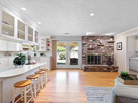 Spacious three-bedroom, two-bathroom ranch home located in Santa Clara on a large lot just shy of a quarter acre! This charming residence features three separate living spaces, a great room-style kitchen/living room with gas fireplace, a large primary suite and beautiful oak hardwood floors in the entry, living room and kitchen. The home also has a separate laundry/mud room with a sink, crown molding in many of the rooms which adds a nice touch, and a full size two-car garage. Outside the home you'll find a wonderfully landscaped fenced yard with mature foliage, covered patio, deck, hot tub, gazebo, sprinkler system, a spot for RV parking and an irrigation well equipped with a brand-new pump.