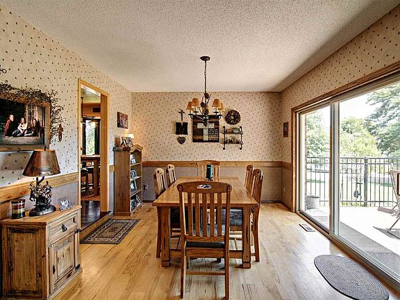 Beautiful setting for this œalmost in the country home yet just a couple of miles from shopping and restaurants! This 4 BR 3.5 BA home offers over 4000 finished sq ft and includes both 2 car attached garage and a 30 x 40 detached 2+ car garage/workshop on over 2 wooded acres. You will first notice the quietness of the neighborhood and the great curb appeal with a huge front yard, mature trees. As you enter the home through the tiled floor foyer, be amazed by gorgeous views to the backyard from the LR featuring a wood-burning fireplace with stone surround and vaulted to the 2nd story. The living room, formal dining room and kitchen are all outfitted with hardwood floors. The center of the home is the top of the line kitchen with new granite countertops, hickory cabinets, beautiful tile backsplash, copper farm sink, stone range hood, pantry, wine nook, wood ceilings and informal dining area. The convection microwave oven and induction cooktop add the finishing touches. Down the hall you will find an upgraded half bath with a copper vessel sink, lovely vanity and wood ceiling. Looking for a private master suite? This one has it all with wood ceilings, separate 12 x 11 sitting room boasting a stone wall with built-ins, and a stunning Master Bath complete with a large walk-in tile/glass shower, waterfall-jetted tub, corian countertops, his & her vanities, hickory cabinets, tile floors and walk-in closet. The 2nd BR and laundry room round out the main level. The spaciousness continues on the upper level where you will find a huge loft area perfect for an office, 2 more bedrooms and the 2nd Full Bath. The finished basement is complete with a large Family Room, wood-burning stove with brick surround, Game room, wet bar, Activity room, Exercise room, ¾ bath, an additional finished room and lots of storage. The outside entertainment space is impressive with a huge composite deck, wrought iron and wood fencing, fruit trees, mature shade trees. Back to the oversized detached garage"its insulated and heated, has overhead storage, half Bath and 2 sinks, great for cleaning fish! Tankless Wtr Heater, water softener, new HVAC. Homes in this neighborhood do not become available very often!! Call to schedule your private showing of this amazing home today!!