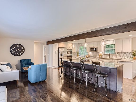 Experience the harmony of luxury, convenience, and nature in this immaculate 5-bedroom, 3.5-bathroom ranch home. This elegant abode spans over an expansive 10,400 Sq. Ft. lot, perfectly positioned in a serene cul-de-sac within Denver. A unique location that not only offers you a tranquil neighborhood and connects you to an extensive trail system, including the Cherry Creek Trail and Highline Canal. The nearby Hampden Heights Park and Cherry Creek Reservoir are just a short walk away, with convenient access to I-25 and I-225. As you step inside, the custom oak hardwood flooring guides you to a modern culinary dream. The kitchen boasts new Fabuwood soft-close cabinets, granite countertops, a gas cooktop, a double oven, and stainless steel appliances. An integrated wine fridge and a large island, flowing seamlessly into the dining area, add an air of sophistication. This gem has undergone high-quality updates, including a new roof installed just two years ago and upgraded windows. The carefully designed layout centers around a cozy living room with a beautiful gas fireplace. On the main level, retreat to your primary bedroom, complete with a luxurious 5-piece bathroom, adorned with Carrera marble and equipped with two walk-in closets. An additional bedroom with an attached full bathroom and a guest half-bath is also conveniently located on the main floor. The lower level reveals a finished basement, offering three additional bedrooms, an office, a full bathroom, and a spacious family room. Step outside to a professionally landscaped backyard and patio area. This outdoor haven, with a new privacy fence, a flourishing 50-year-old Ash tree, a custom-built Tough Shed, and an optional playset, invites you to create your personal oasis. This perfect blend of an idyllic layout, location, and landscape, sets the stage for a lifetime of exceptional living. Welcome home. Check out the 3D virtual tour here: https://my.matterport.com/show/?m=GKuz5199UCF&mls=1