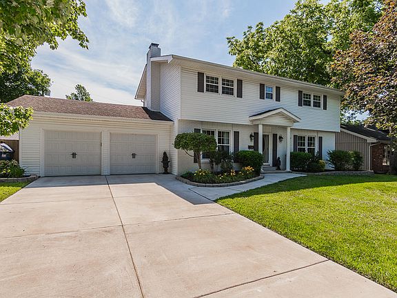 This impressively remodeled two story home with basement and in-ground pool is in the highly sought after Crestview Estates subdivision in southeast Springfield. The home features three living areas – including a formal living room, family room, and basement living or recreation area – plus a formal dining room, and eat-in kitchen that has new granite countertops and tile backsplash; the ½ bath is off the kitchen and also has a granite countertop. The appliances are all stainless. Upstairs you will find all four bedrooms which have new carpeting. The master bath has been totally remodeled with a stunning artistically designed tile shower. Some of the special features of the home are the beautiful hardwood floors in the living and dining rooms; the striking feature of the stairs and upstairs landing all in hardwood; four inch crown molding that highlight the living, dining, and family rooms; the tile floors in the entry, family room, kitchen, and all baths, in addition to having two fireplaces. Neutral colors were used as the entire inside of the house was repainted including unusual texturing on many of the walls. Even the spacious storage room in the basement that houses the laundry room has a special touch with a painted concrete floor. Unique and important aspects of this home are the water softener system, the new 95% energy efficient furnace, the vinyl windows, the storm doors at the front and back of the house, the pop up drains in the front yard, and a gated privacy fence. A Home Warranty is included. This home is in an exceptionally convenient location and ideal for entertaining around the pool or family gatherings. Truly a must see to appreciate all the quality upgraded features.