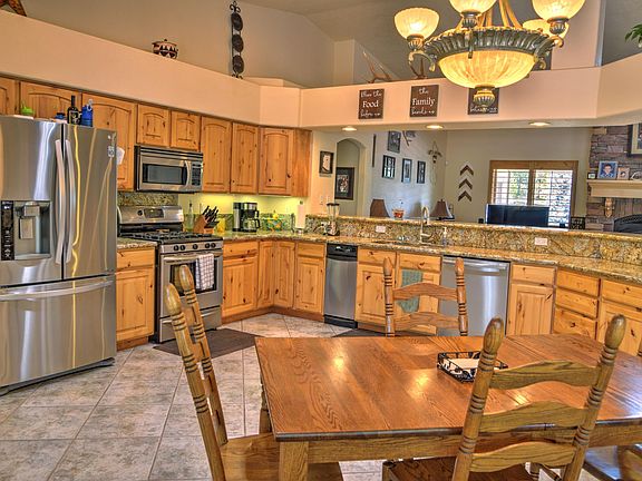 Do not miss this amazing Country Club home located in beautiful Williams Arizona. Loaded with awesome custom features including a huge country kitchen with Knotty Alder solid wood cabinets, premium granite counter tops and stainless steel appliances. This incredibly open floor plan includes a fantastic family room with a centerpiece, floor to ceiling stone woodburning fireplace. This split floor plan includes wood plantation shutters throughout,18 inch ceramic floor tile and an additional sun room/office that is in addition to the square footage of the home. The three huge car garage (936 sq ft.) has high garage doors to accommodate high profile vehicles. This home features central air conditioning however its so well insulated and energy efficient its rarely needed. Call for your showing!
