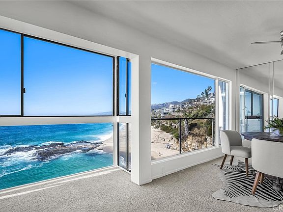 Spectacular Table Rock Condo with Breathtaking Coastal Views! Perched atop the dramatic bluff of Laguna Beach's coveted Table Rock, this stunning oceanfront condo offers an unparalleled living experience. The awe-inspiring panoramic whitewater views stretch along the northwestern coast, from the golden sandy beaches below to the sparkling city lights along the coast all the way to Palos Verdes. From the moment you step inside, you'll be captivated by the mesmerizing beauty of the Pacific Ocean, where marine life flourishes in a breathtaking natural display. This rare gem is a front-row seat to nature's grandeur-watch the majestic whales, playful dolphins and soaring pelicans along the endless horizon. The light and bright interiors open up to expansive windows that frame the ever-changing ocean scenery, ensuring that you can enjoy year round sunsets over Catalina Island. This single story property features an open floor plan with a large living room opening up to the dining area and kitchen, all with stunning views. The spacious primary suite with an enclosed patio seating area overlooking the vast ocean makes for a perfect retreat and the guest room with ensuite bath can also be used as an office. Experience true resort style living in this prestigious community surrounded by breathtaking coastal beauty. Amenities include a sparkling pool and spa, billiards room, gym, clubhouse with kitchen, laundry facilities, an ocean view BBQ area and private steps to access West Street Beach. Enjoy the best Laguna Beach has to offer with world-class resorts, restaurants, galleries, shopping, golf, hiking trails and beautiful beaches just moments away.