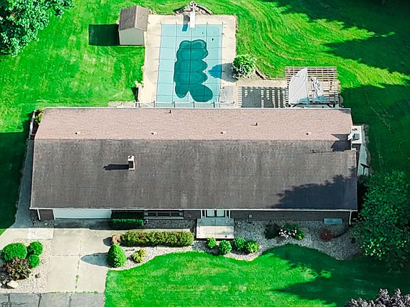 Fantastic country ranch with just under 2 acres. This large 4 bedroom, 3 1/2 bath home has a private setting with expansive views. Beautiful backyard area with heated swimming pool, patio area, and a pergola for entertaining. A huge decks sweeps across the back of the house. Geothermal heating and cooling, Underground sprinkling system. Large two car garage with workshop area. Great pole barn for extra storage. Lower level walkout features a expansive family/rec room with fireplace, oversized bedroom and bathroom conveniently located off the pool. Main floor laundry. Primary bedroom features double closets.Sit on the deck, relax and watch the wildlife.