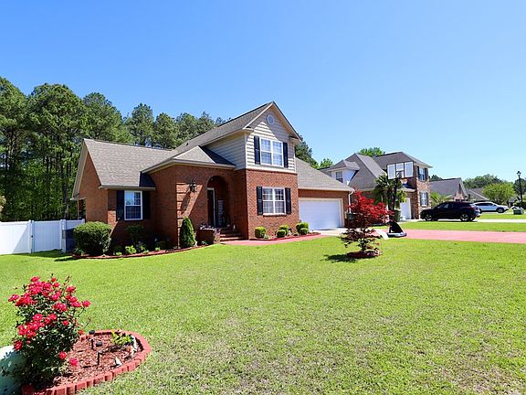 1.27 acre lot located in Carolina Palms. 4 bedrooms, 2.5 bathrooms, 2 car garage, covered back porch along w/ a patio, fenced backyard w/ extra lot behind the fence. Downstairs features: Foyer, large living room w/ a fireplace, formal dining room, kitchen w/ plenty of cabinet & counter space, eat-in kitchen, 1/2 bathroom, utility room w/ storage above the washer & dryer, spacious primary suite w/ a large walk-in closet, full bathroom featuring dual vanities, separate tub & shower, water closet. Upstairs features: Three comfortable sized bedrooms, sitting area and a full bathroom. The covered porch sits above & overlooks a big backyard that's fenced. Large patio w/ space for the grill & some chairs Close to Shaw AFB & Town. Don't miss this one! Buyers loan was denied a week before closing.