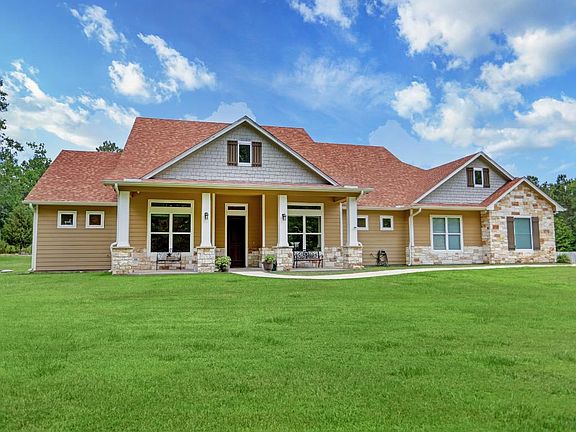 Extraordinary, fully fenced 25-acre property with electronic gate access and large pond boasts a stunning home with covered patio and summer kitchen, 50'x30' barn w/AC & heat, extensive security system, whole house generator, massive sprinkler system around home, private well and so much more! Beautiful home features open floor plan, huge primary suite, 3 en-suite baths & well-appointed mud area leading to oversized garage. 1500 sq ft floored attic easily accessed by full staircase is great for storage or perhaps additional living/bedroom space. Split water system for outdoor/indoor use. Water softener for indoor use;drinking/cooking water on reverse osmosis;tankless water heater. Primary, secondary baths & doorways are wide for wheelchair. Outdoor flood lighting system, 100' firebreak around home, WI-FI range to 100 yds in backyard & foam insulation are just a few more custom features. Full timber exemption, LOW TAX RATE, horses allowed! Well-maintained, pristine property is true gem!