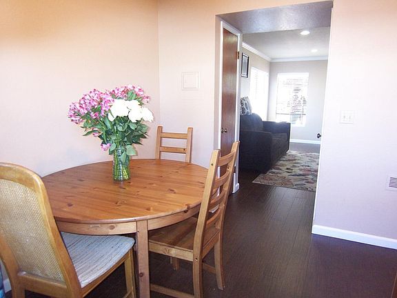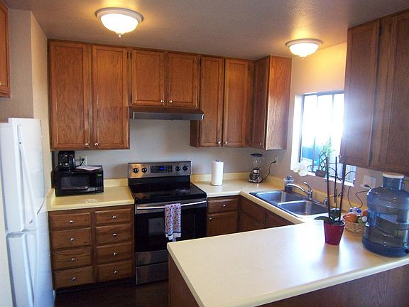 Great starter unit with garage and private yard. Front yard is fenced too to keep the little ones in. Half bath on first floor, Laundry in upstairs bathroom. 2 dual pane sliding doors with blinds inside the panes. Upgraded lighting through out. Won't last at this price!!