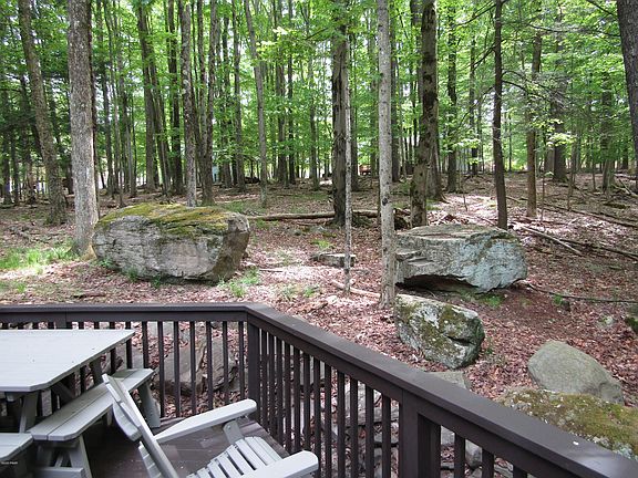 A beautiful home nestled in the woods offering many extras. In addition to the 3 bedrooms and 2 full baths the home has a large dining area with a fireplace off the kitchen. A spacious living room plus a bonus sunroom with two built in Murphy beds for extra guests. The large back deck overlooks the peaceful wooded area in the rear of the house. The house also has air conditioning throughout, a new metal roof, new flooring, and a whole house generator. To top off this great value the furniture stays! Move right in and start to enjoy your get away. The Hideout is a four-season gated community with a multitude of amenities. Including lakes, beaches, pools, a golf course with a club house, ski hill, indoor recreation center, tennis courts, ball courts, 24-hour security, and much more, Beds Description: 2+BED 2nd, Beds Description: 1Bed1st, Baths: 1 Bath Level 1, Baths: 1 Bath Level 2, Eating Area: Dining Area, Eating Area: Semi-Modern KT