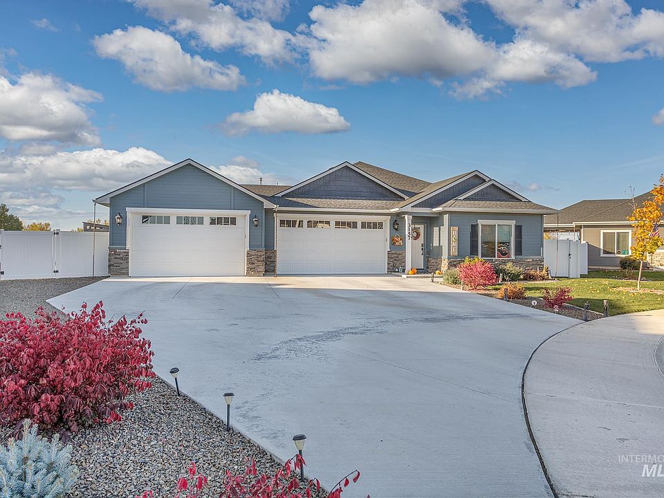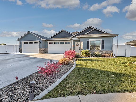 Hard-to-find 4 bedroom, 2.5 bathroom custom home on 0.33 acres - one of the largest lots in this small subdivision of less than 30 homes. 4 car garage with 220V and a small shop on the backend complete with large wood shop bench. Open up the full garage by taking down 2 partition, non-weight bearing walls. No rear neighbors, sit around your in-ground metal fire pit w/ amazing views of the sunset & enjoy your large backyard. Large 1,213 sq ft driveway and extra parking behind RV gate for RV/boat/toys. Nice open, vaulted living room with floor to ceiling rocked gas fireplace. A lot of kitchen storage with custom cabinets. French doors open up to a big, covered back patio w/ extended concrete pad perfect for BBQ'ing. Large primary bedroom with a door that leads to the back patio, ensuite bathroom with fully tiled walk-in shower and dual vanities. Granite countertops throughout the whole house. Additional perks include: conditioned crawlspace (seals off the crawlspace making this home very energy efficient), 3 large raised planter boxes w/ automatic drip system so you can grow your own fruits & veggies, and shed. Come make this home yours before the holidays!