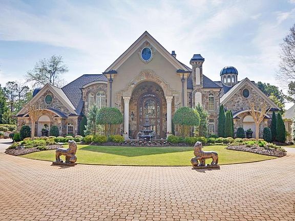 Stunning European Estate in Johns Creek's most prestigious gated golf community. Sweeping views of the 3rd fairway,nestled against the Chattahoochee River,this home is an architectual masterpiece custom built for entertaining. Gourmet kitchen opens to breathtaking family room and enviable veranda w/ outdoor kitchen. Master on main, luxury master bath boasts marble floors,vaulted ceilings,&onyx jetted tub. 4 spacious bedrooms upstairs. Terrace level includes theater,billiards,secondary bar, full gym/sauna.Inviting Pool-side ext. stone fireplace is perfect for any party.