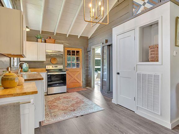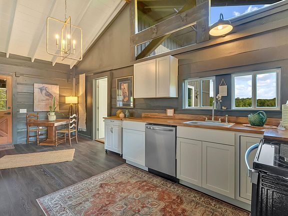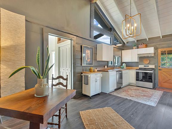 Back on the market! No fault of the seller. Cabin life! This amazing little cabin is perfect for an Airbnb or a cozy cabin home for someone. This cabin has all new everything! New roof, new electric, new hvac, new plumbing, flooring, tiled showers, windows, and bath. The ceilings are vaulted giving the entire home a larger sense of space throughout. A nice size kitchen has a dining area, new appliances, and new cabinetry with a pantry as well. The cozy den area has a new electric fireplace and custom wood wall. The main bathroom has a large tub with tiled shower walls, nice vanity and area for a stackable washer and dryer. The master bath is a new tiled walk-in shower with ample room. The primary bedroom is huge! 20x16 with large sliding glass door opening to a new deck overlooking the backyard. The back of home has another partially covered back porch as well. This property offers two barns for loads of storage space. The barn at the road was actually an old general store. You can still see some of the original old walls within. The exterior is newer with a newer roof. The other barn is at the property line on the backside of the property. It has a ton of extra space for storage or hobbies. The backyard is extremely private overlooking a small creek and large farm. This property has it all for someone looking for a sweet country home!