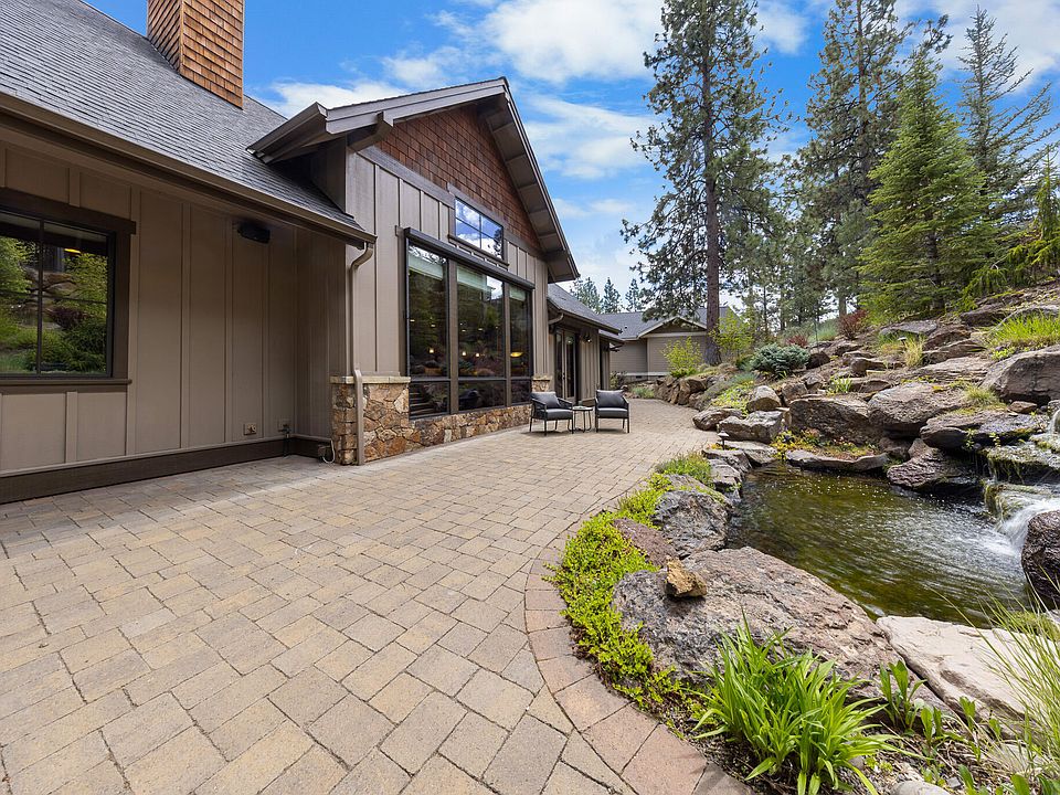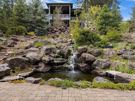 Embrace tranquil luxury in this stunning retreat! Vaulted great room windows capture serene water features & lush landscaping. Entertain in a gourmet kitchen w/ Monogram range & granite. Hickory floors flow to a vaulted bonus & spa-inspired primary suite w/ soaking tub, dual-head shower & heated floors. Enjoy a paver patio by the stream, natural gas BBQ, dual-zone HVAC, generator & custom details throughout. Nature's beauty meets modern comfort in this exquisite home—an exceptional place to live! From the owner, Frogs come out for a visit about tax day and leave about Memorial day. It's so pleasant to fall asleep to their songs. About the same time of the year two male Mallards and a Hen come and stay for a few weeks. I never tire of their beauty and devotion to one another.Great Room W/Vaulted ceilings and large picture windows with Hunter Douglas blinds offer breathtaking views of the waterfall and pond.