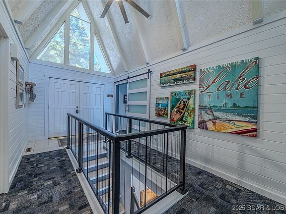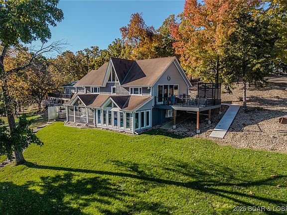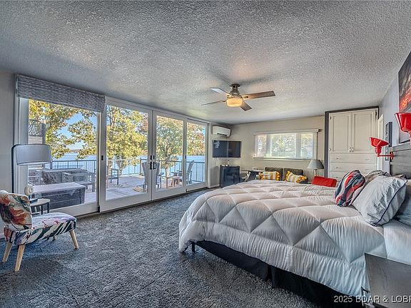 Welcome to your private lakeside escape where every sunrise glistens across the water & every moment feels like a getaway. This remarkable 4 bedroom, 2.5 bath home sits on an unbeatable waterfront lot with 160' of level frontage & sweeping, unobstructed views. Inside, walls of glass frame the water’s edge, filling the living spaces with breathtaking views. The open design blends the living room, dining area, & kitchen, complete with breakfast bar & wet bar. Step outside to the screened-in deck, perfect for dining al fresco, with a BBQ area just beyond. The luxurious master suite is a retreat of its own, featuring a spacious walk-in closet, wall of windows & direct access to your private lakeside patio with firepit & loungers - ideal for slow mornings or starlit evenings. A large storage room, generous interior storage, & 1 car garage (lot offers plenty of room to build additional garage) ensure effortless functionality. When it’s time to unwind, your martini deck is the ultimate spot for sunset cocktails. The dock includes a swim platform, storage area (ready to become your lakeside bar), & 12x36 slip with remote hoist completing this rare, turn-key waterfront sanctuary.