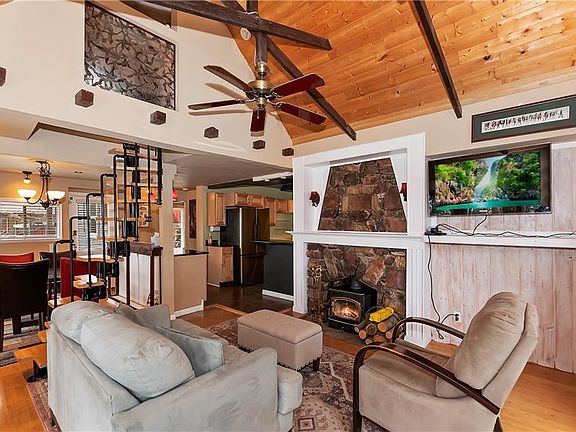 The treehouse above the clouds is calling you home. This cabin is located in the mountains but is only a few minutes from a highway. Get the best of both worlds! A beautifully landscaped yard is perfect for entertaining. Sit in your backyard off of your deck or on one of the different tiered areas with a privacy fence around the back of the home. Enjoy the birds chirping as you relax among the mountains. This cabin captures mountain charm. Rumor has it, back in the day this used to be a small hunting cabin. Now, this recently upgraded escape comes with stainless steel appliances, new cabinets, a custom tile shower, and new wood-style flooring that is ready for a new owner to call it home. On a clear day, you can see for miles over the mountain valley. These breathtaking views are an extremely rare find, especially for this price. Come hang out amongst the clouds!