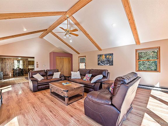 CONTRACT PENDING! Call Listing Agent for info. Brand new updated Quartz Kitchen Counters and Sink. This charming cozy cabin is nestled above 3 enchanting acres of private land with stunning natural rock outcroppings. Fox frolic in the snow, and deer visit frequently. The gently sloping natural forest hosts local fauna of all types day and night. Welcome home to a perfectly paved southern facing drive, with space for all your toys in the 2 car attached garage with automatic garage door & large shed behind the garage, and additional paved parking pad nestled in the pines. New electric panel (2020), newer roof. All paved roads to home! Easy commute to town, office or the neighboring town of Evergreen or Bailey. Snuggle up in the large but cozy great room with forest views while you sip Cider or your favorite adult beverage. The kitchen is well equipped with Stainless Steel natural gas Stove/Oven Combo and newer Stainless Steel Dishwasher. Plentiful real wood cabinetry with unique hardware. Dine indoors on a cool night, with plenty of space for family meals in the dining area. In the spring, summer and fall dining outdoors on the deck off the kitchen, will be delightful. A few stairs away get a great nights sleep in your pick of 2 bedrooms on the upper level. The upper level would make a wonderful dedicated primary suite of rooms with a sitting area, dressing room or library. Primary Bedroom entry to the left has its own intimate Juliet Balcony with southern facing forest views. Appreciate the convenient main floor bedroom. Ground level bedroom, has plentiful natural light. Ground boasts a level large office or gaming room and utility storage space. The HE Washer and Dryer are included. Garage entry to Bonus Large shed. Oh yes, the home has high speed internet. But wait there's more... The Honda Snow blower is staying!