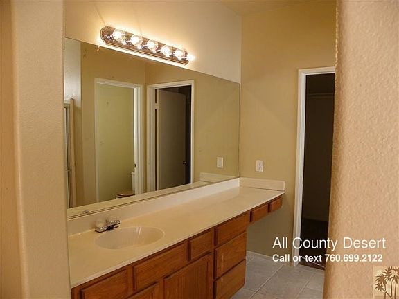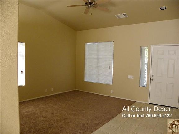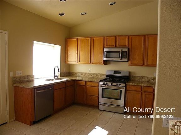 SCHEDULE A SHOWING ONLINE AT: showmojo.com/lh/147e48c08c Cozy 2BR/2BA unfurnished home available for long term lease in Thousand Palms. This home features upgraded kitchen with granite counters, stainless steel appliances, and tile flooring. Carpeted living room and bedrooms. Large fenced yard and two car attached garage. Washer/Dryer Hookups. Tenant to pay all utilities including electric, gas, water, and trash. Bring your own refrigerator. All applicants must pass a comprehensive background screening. Tenant occupied until October 31, 2017. Schedule an appointment to view this lovely home today!