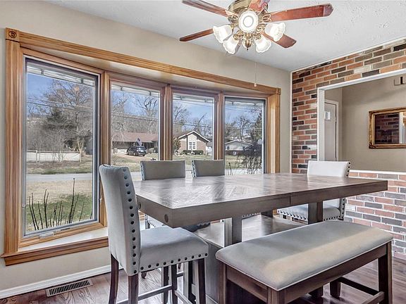 Great tri-level home located in Francis Howell School District & close to Page Extension. Entering the home on the Main Level you will find the dining room w/ wood floors & large bay windows providing ample natural lighting. Dining room flows into the living room with a cozy gas fireplace. Kitchen offers stainless steel appliances, custom cabinetry & ceramic tile floor. Breakfast room features atrium doors leading to the patio & door to Mud/Storage Room. The large Mud/Storage Room allows for plenty of storage & access to the attic. Upper level includes hardwood flooring throughout, Master Bedroom w/ Master Bath, 2 additional bedrooms, & a full hall bath. Lower Level provides the 4th bedroom, family room & laundry room. Home backs to trees, is on a level fenced lot, & includes a shed. Did I mention ample parking, with a large driveway including 4 pad parking around back.