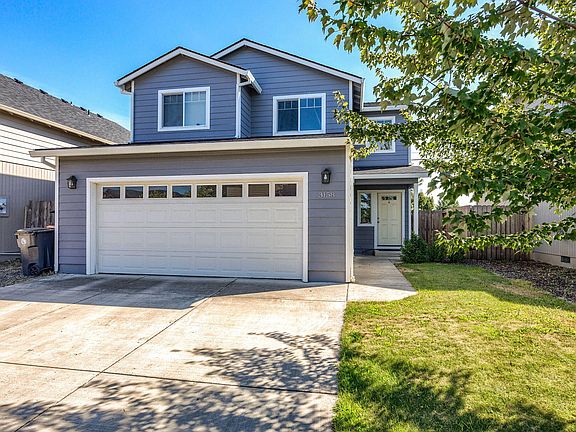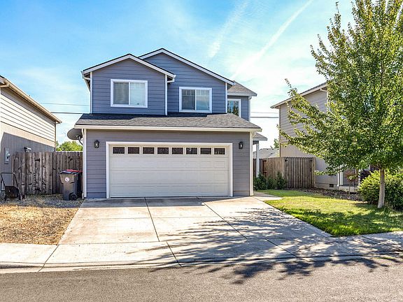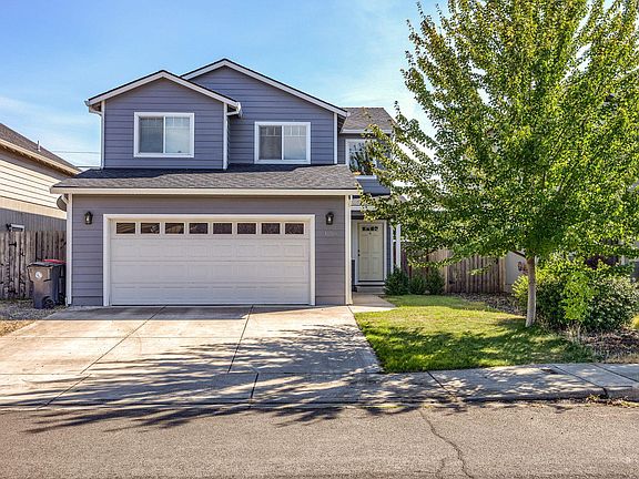 Beautifully maintained 2016 built, two story style home located in a newer subdivision in White City. This gorgeous, 1,728 square foot, 3 bedroom-2.50 bath home with its open floor plan has lots upgraded features that include: large open kitchen with custom cabinets, granite counter tops, tons of counter space and cabinet storage, stainless steel appliances, breakfast bar, formal dining area, huge living room with large windows, tons of natural light and slider door access to the covered rear patio and yard area. The upper level includes two nice size guest bedrooms and hallway guest bathroom. The spacious primary suite has a large walk-in closet with built-in closet organizers, primary bath with double sink vanity, granite counter tops, tile floors and 5' shower. Other features include: vinyl plank flooring, ceiling fans, front entry open to the 2nd floor, interior utility room, finished garage, nicely landscaped and fenced yard with auto sprinklers.