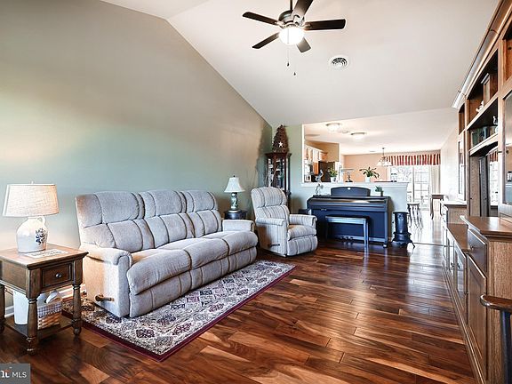 First floor living at it's finest! This immaculately kept rancher in the prized Faire Wynd community is ready a new owner desiring the convenience of this E.G. Stolzfus built end unit townhouse that boasts main floor access to all rooms including laundry. Beautiful hardwood floors greet you as you enter to the family room with grand cathedral ceilings. Kitchen has large island with plenty of counter space and cabinetry, including pantry. Attached dining room has laminate flooring with room for dining room table and a walkout access to covered patio. Large Master Bedroom is accompanied by attached master bath with tub/shower. Secondary Bedroom and bathroom available for guests as well. Third bedroom is currently serving as a workshop but let your imagination help you see the possibilities. Some fenced backyard space and HOA is welcoming towards dogs. Faire Wynd HOA documents are uploaded. This holiday special will allow access to showings starting 12/27/2023 with open house 1-3 PM New Years Eve,