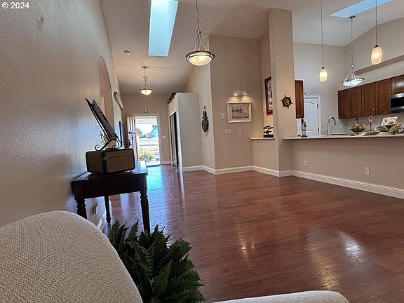 Immaculate home with abundance of natural light compliments the spacious open floor plan with vaulted ceiling. The Kitchen shines with Redwood cabinets, Quartz countertops, undermount stainless sink, Stainless Frig and tile flooring. The living room is spaciousfor entertaining with doors opening to your beautiful and seculed back yard. Each bedroom could be called private suite with each having their own full bathroom with walk in showers. Master Bedroom has two walk in closets. Additionally,the master bedroom also leads to the back yard with trex decking. Propane fireplace in the living room, ceiling fans, wood flooring and carpet in the bedrooms. Low maintenance landscaping, fully fenced back yard with raised beds in the side yard. And for the car lovers, this home comes with a 3 car garage. Home is well maintained and the gutters are protected with Leaf Guards. Only a stones throw from the ocean, beach trails, shopping, and much more. One of a kind that you must see! Property line goes approximately 8 feet past back yard fence.