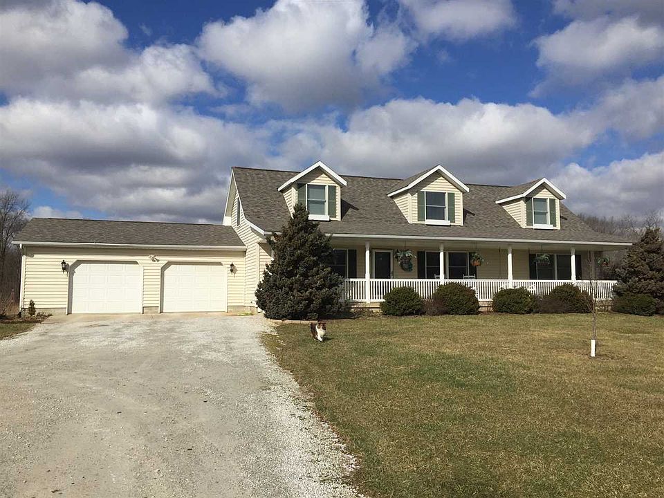 Enjoy country living with a 4 bedroom, 3 bath home which includes an 8 by 51 foot front porch and 3-car garage. Home sits on 5.01 acres with 1.5A in woods. Enjoy the comforts of a large family room with lots of windows looking out to the property.