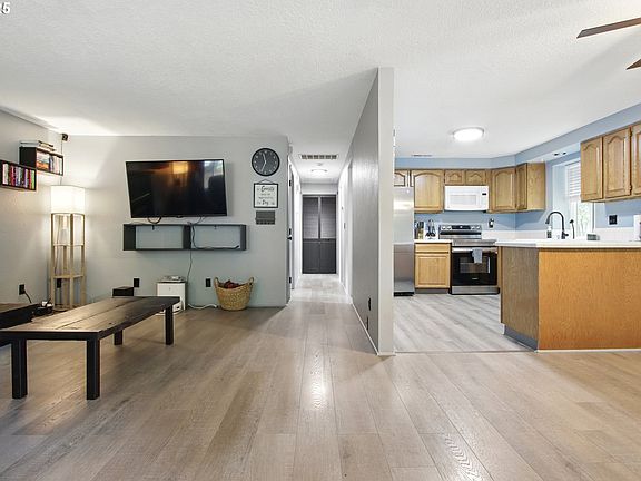 This charming Centennial ranch is full of potential and ready for your personal touch! The welcoming covered front porch leads into an efficiently designed floor plan featuring new laminate flooring throughout and brand-new windows. The functional kitchen comes equipped with newer appliances, and the living room offers a cozy gas fireplace. The back patio is perfect for relaxing with friends and pets while overlooking the spacious backyard. Garden enthusiasts will appreciate the planter boxes ready for planting, and the expansive yard offers endless possibilities for your outdoor activities. You'll also find a two-car garage and a wide driveway, providing ample space for vehicles, RV's and other toys. Conveniently located just minutes from the stunning views at Powell Butte Nature Park, offering a peaceful greenspace with endless trails to explore. Access to Powell's TriMet line is also just a few blocks away. Don't miss the opportunity to make this house your new home! [Home Energy Score = 7. HES Report at https://rpt.greenbuildingregistry.com/hes/OR10237459]