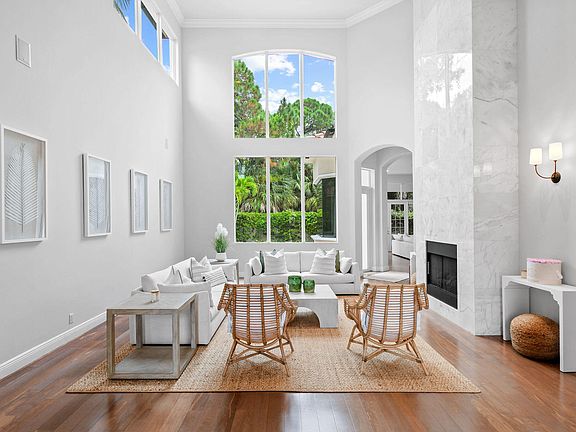 Set on a private corner lot, this stunning residence represents the pinnacle of luxury living, featuring an array of high-end amenities and finishes. From the moment you arrive, vaulted ceilings and a striking marble fireplace welcome you, complemented by new hardwood flooring that enhances the home's bright, airy feel. The renovated kitchen boasts a marble backsplash, a gas range, an oversized pantry, and a new wine fridge. The first floor showcases a tranquil master suite designed for comfort and convenience. This suite includes spacious California walk-in closets, providing ample room for organizing clothing and personal items with ease. Additionally, the layout features a versatile den or office space, ideal for use as a quiet work area or a cozy retreat for relaxation. Upstairs, you'll find three bedrooms and two meticulously renovated bathrooms. Enjoy seamless indoor-outdoor living with a covered patio overlooking a heated pool. Additional features include all-new light fixtures, designer window treatments, a new hot water heater, two new AC units, and a new washer and dryer. Located in a prestigious guard-gated community in Palm Beach Gardens, this home ensures security and tranquility. It's just minutes from top dining, shopping, and Juno Beach. Residents benefit from access to a clubhouse, tennis courts, and a sparkling pool. Discover the ultimate in comfort and sophistication that 3158 San Michele Drive has to offer.
