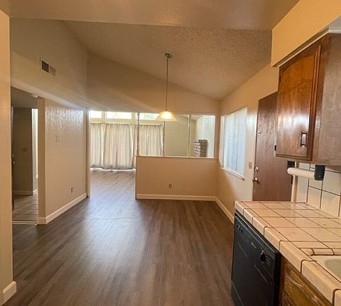 Beautifully Updated Home with Modern Comforts and Private Garage Step into this freshly painted home featuring brand-new Luxury Vinyl Tile and a private garage with remote access. The spacious living room boasts vaulted ceilings and a charming adobe fireplace, creating a warm and inviting atmosphere. Sunlight pours in through stunning bay windows, brightening the entire living space. Enjoy outdoor gatherings in your private side yard, perfect for barbecues and relaxing evenings. This home offers both comfort and style move-in ready and waiting for you! Please apply if interested. Owner pays for Sewer , Garbage and Water. Yard is taken care by tenant. Pacific Gas and Electric and any utility or cable bills taken care by tenant.