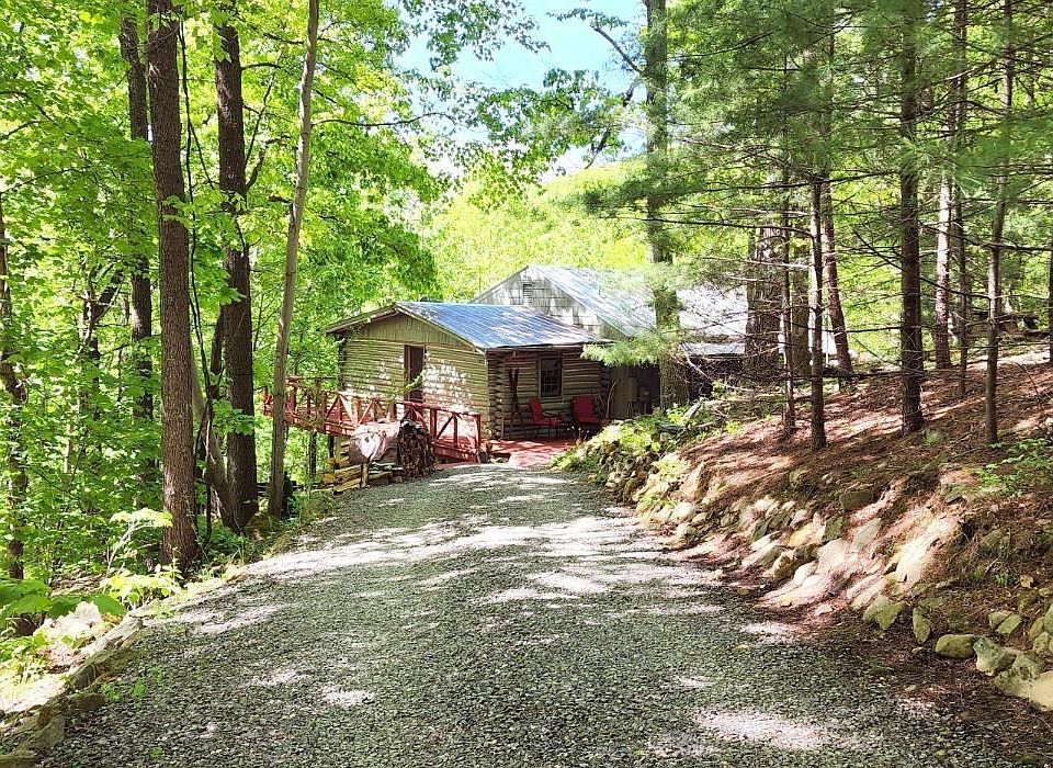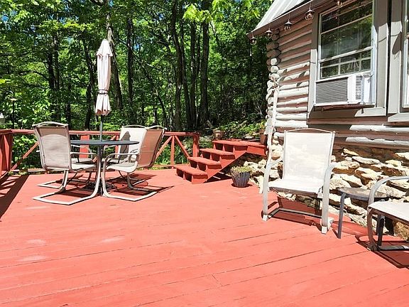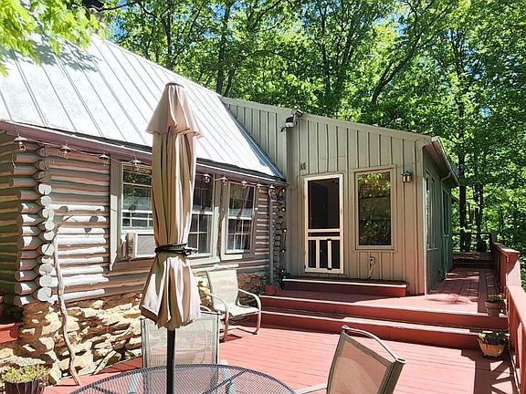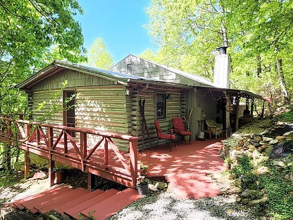 Amazing mountain setting less than one mile off the Blue Ridge Pkwy. Surrounded by peaceful woodlands & quiet spaces, this log cabin has beautiful views. This 2 bedroom 1 bath vacation getaway has the rustic charm of wood floors, log beam ceilings, stone walled fireplace & wood stove but the modern amenities of a Trane heat pump, Dish TV, Wi-Fi, heated toilet seat and bidet. Huge master bedroom with the sunrise filtering through the East facing window; walk out onto the wrap around deck & enjoy your coffee in the fresh air. One fireplace can be enjoyed from the LR, kitchen or dining area and a separate wood stove serves the cozy den with a loft with room for a queen-sized mattress. The cabin is being sold furnished with some personal items reserved by the Sellers(list of these items are available). Laundry room on main level. Crawl space is easy to access with clean dry vapor barrier. Average annual net from Airbnb rentals over the last 5 years is $11,893. Ready for you to rent today.