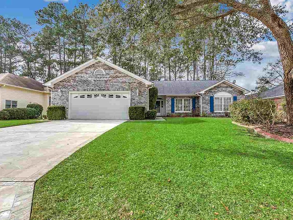 Gracious one level design in desirable River Hills offer the best in southern living. Upon entry you will be greeted by a great room with soaring ceilings, many windows, generous sized rooms and abundant closets and storage. The oversized granite kitchen is the focal point for entertaining and features plenty of cabinetry, counter space, newer appliances, and is open to an inviting area dining room which includes ample seating at the breakfast bar. Sizable master suite is highlighted by a tray ceiling, large walk in closet and is open to an updated master bath with tiled step in shower, jetted tub and double sinks. The powder room off the kitchen has been beautifully remodeled and includes wainscoting, built in storage drawers and shelving and also houses the washer and dryer. Interior has been improved with wood flooring in great room and hallway as well as several newer lighting and plumbing fixtures. An added bonus is the rear Carolina Room which boasts panoramic views of Eagle Nest golf course and is open to rear patio for extended outdoor living. Oversized 600 square foot garage with laundry sink is a dream. Situated on a well landscaped homesite with in-ground irrigation. Country club amenities available separately.