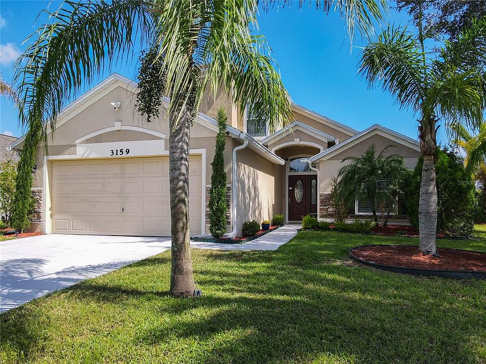Welcome to your dream home located in the vibrant heart of Kissimmee. This stunning two-story residence combines luxurious design with modern functionality, offering 2,254 square feet of beautifully appointed living space. Featuring four spacious bedrooms, this home includes a sumptuous owner's suite on the first floor, complete with two walk-in closets and a newly renovated bathroom featuring dual sinks, a separate shower, and a garden tub for serene relaxation. The home boasts three finely updated bathrooms and exquisite finishes throughout. Enjoy the elegance of custom crystal light fixtures and chandeliers, as well as fashionable fandeliers that add a touch of sophistication and ambiance throughout the home. Recessed lighting in the kitchen complements this stylish space. Designed with an open floor concept, the main living area seamlessly integrates the living room, dining area, and kitchen, providing a spacious and inviting environment perfect for entertaining guests or enjoying family time. The open layout enhances the flow of natural light and offers flexibility in the use of the space. kitchen is a chef's paradise with granite countertops, a breakfast bar, a pantry, and state-of-the-art stainless steel appliances, including a GE smart stove with air fry capability and a new refrigerator. The home's construction ensures enduring strength and energy efficiency, with solid concrete walls on the first floor offering added durability and peace of mind. Additional features include a two-car garage and 5-inch custom baseboards, contributing to the home's refined detailing. Enjoy the perfect blend of indoor and outdoor living. The first floor features elegant porcelain flooring, while the second floor boasts sleek bamboo flooring. Relax in the lanai, tiled in elegant travertine to match its serene screened-in setting. A beautifully extended brick paver patio and extensive lush tropical landscaping make entertaining and leisure time a joy. The home is located in the desirable Doral Pointe Community, which offers fantastic amenities such as parks, playgrounds, and a beautiful pool and cabana area. Safety is ensured with community security cameras, and convenience is emphasized with proximity to the Kissimmee Campus of Valencia College, the SunRail station, Shopping, Restaurants and just 14 miles from the magical Disney World. Whether you’re a growing family or looking for a relaxing retreat near Florida's most beloved attractions, this home has everything you need. Don’t miss out on the chance to own this remarkable piece of paradise. Contact us today for more details or to schedule your private tour.