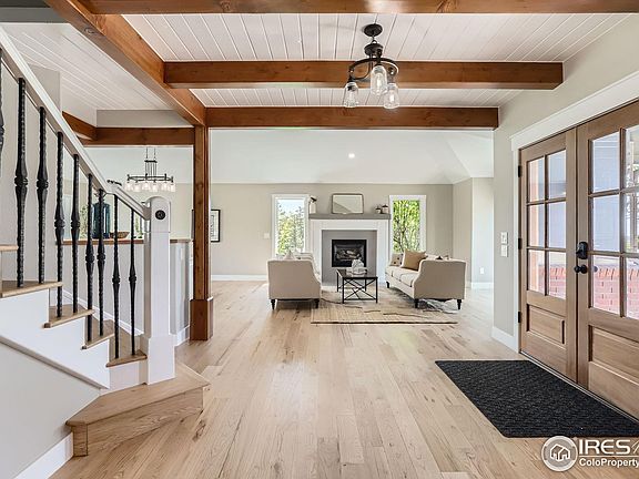 Show stopping 5-acre luxury home just north of Boulder, this freshly remodeled oasis blends the best of country living with the accessibility to Boulder, Longmont, and Lyons. This property is a true gem! Drive up the private road to a collection of custom homes surrounded by nearly 100 acres of protected conservation easement. MONSTER views of the foothills with a direct look at the Flatirons and Pikes Peak. The kitchen has been remodeled to offer modern flow convenience, complete with new thermador appliances. The main level features hardwood floors and views in all directions. Windows, doors, trim, bathrooms, and lighting have all been replaced with high end design and materials choices. The laundry has been relocated to the upper level for easy of use near the bedrooms, with new machines, while the former laundry has been converted to a modern mudroom transition space off the garage entrance. The main-floor office features a built in murphy bed. Step outside to find custom landscaping with irrigation and the included Bullfrog hot tub. New Trex deck and flagstone patio. Steps away you'll find a new 2-stall barn (permitted) with chicken coops, loafing shed, and a matching storage shed. The property is fully enclosed with wire fencing for the dogs. The garage is wired for car chargers and features a climatized and vented storage room. The basement provides additional space for entertainment with a bar, included TV and pool table. 5 minutes to Lake Valley Golf Club, 8 mins to Boulder's North Broadway district. Do not miss the opportunity to tour this home.