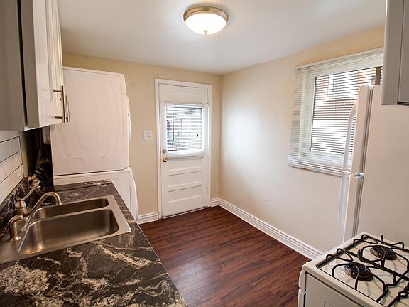 Fully renovated apartment in Englewood 4plex, half a block off S Broadway and Dartmouth. Walk to bars, restaurants, shops, concert venues and the light rail! Less than 1/2 mile to Swedish Medical Center. Unit has 2 bedrooms, 1 bath, living room and kitchen. Ground floor with no stairs. The kitchen features solid wood cabinets, granite counter top, a refrigerator, gas range, and microwave! There is also a stack-able washer and dryer in the apartment. The bathroom has been updated with ceramic tile in the shower and flooring. The unit has hardwood floors, new furnace, new water heater and new windows. Upper unit with fenced in front yard, deck, fenced in back yard, and small area for gardening. 2 off street parking spots. Storage shed. Deposit is one months rent. Must be able to pass background check. Water, sewer, and trash are $50 total per month. Renter will pay electricity and gas directly with the provider. One year lease, no pets. Water, sewer, and trash are $50 total per month. Renter will pay electricity and gas directly with the provider.