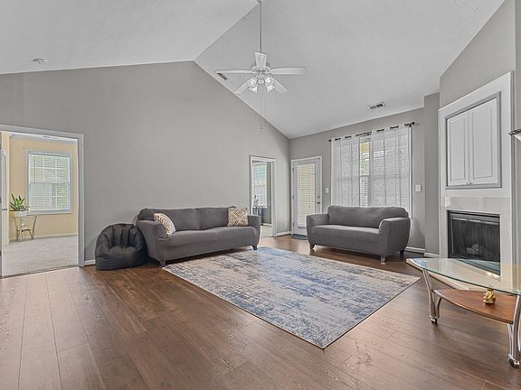 This inviting 2nd-floor condo features soaring cathedral ceilings, an open-concept layout, and a charming fireplace that adds warmth and character. Large windows fill the space with natural light, while the private balcony offers peaceful views of surrounding trees — a perfect spot to relax and unwind. You'll love the flexibility of three comfortable bedrooms, ideal for guests, a home office, or creative space. The home also includes in-unit laundry, extra storage off the balcony, and is part of a well-kept community that features a swimming pool for residents to enjoy on warm Carolina days. Conveniently located near shopping and dining. Washer, dryer, and refrigerator convey. Stylish, comfortable, and move-in ready.